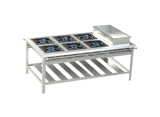Esse conjunto transforma o fogão em um equipamento completo, permitindo que cozinhas industriais realizem diferentes processos sem necessidade de múltiplos aparelhos.